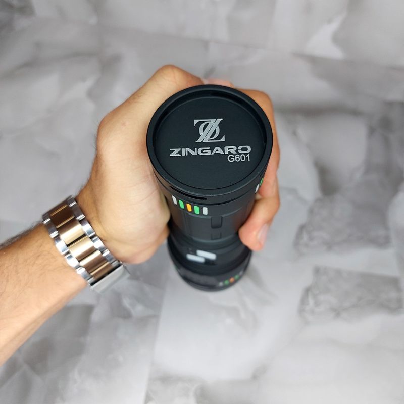 بدنه زینگارو G601 از آلیاژ آلومینیوم هوافضایی ساخته شده که ترکیبی از سبکی و مقاومت بالا را ارائه میدهد. فرآیند آنودایز کردن سطح، مقاومت در برابر خوردگی و سایش را افزایش داده است. طراحی ارگونومیک دسته، حمل راحت و گرفت مطمئن را تضمین میکند.