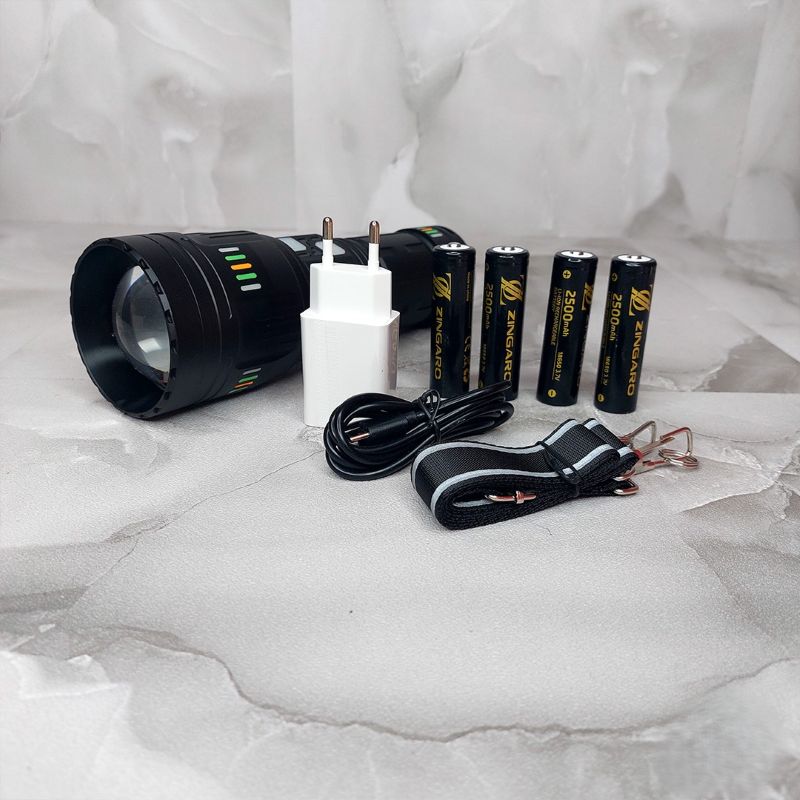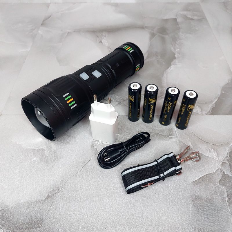 چراغ قوه پلیسی زینگارو با سیستم چهارگانه باتری لیتیوم یون مدرن طراحی شده است. هر باتری ظرفیت 2500 میلیآمپرساعت دارد که در مجموع 10000 میلیآمپرساعت انرژی در اختیار کاربر قرار میگیرد. این باتریها با فناوری حفاظت از شارژ بیش از حد، تخلیه عمیق و اتصال کوتاه مجهز هستند.